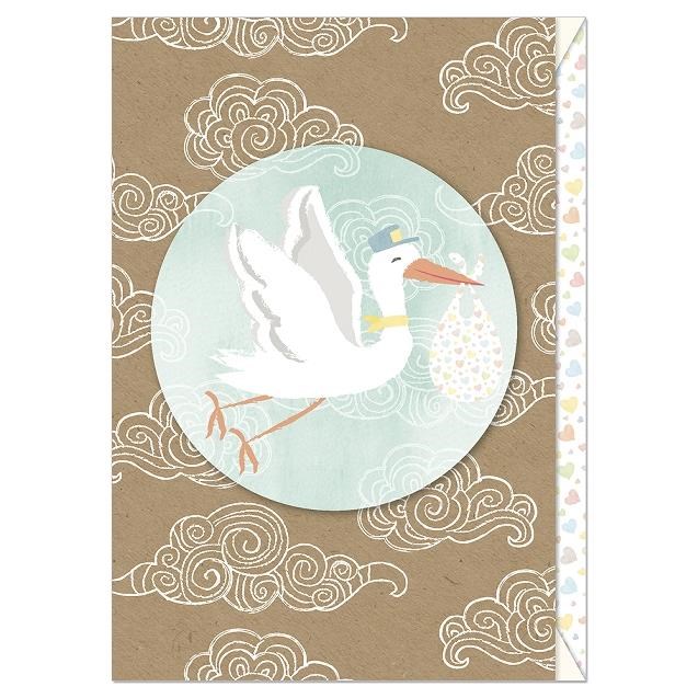 Detské prianie s obálkou na narodenie dieťaťa s motívom bociana 11x17cm