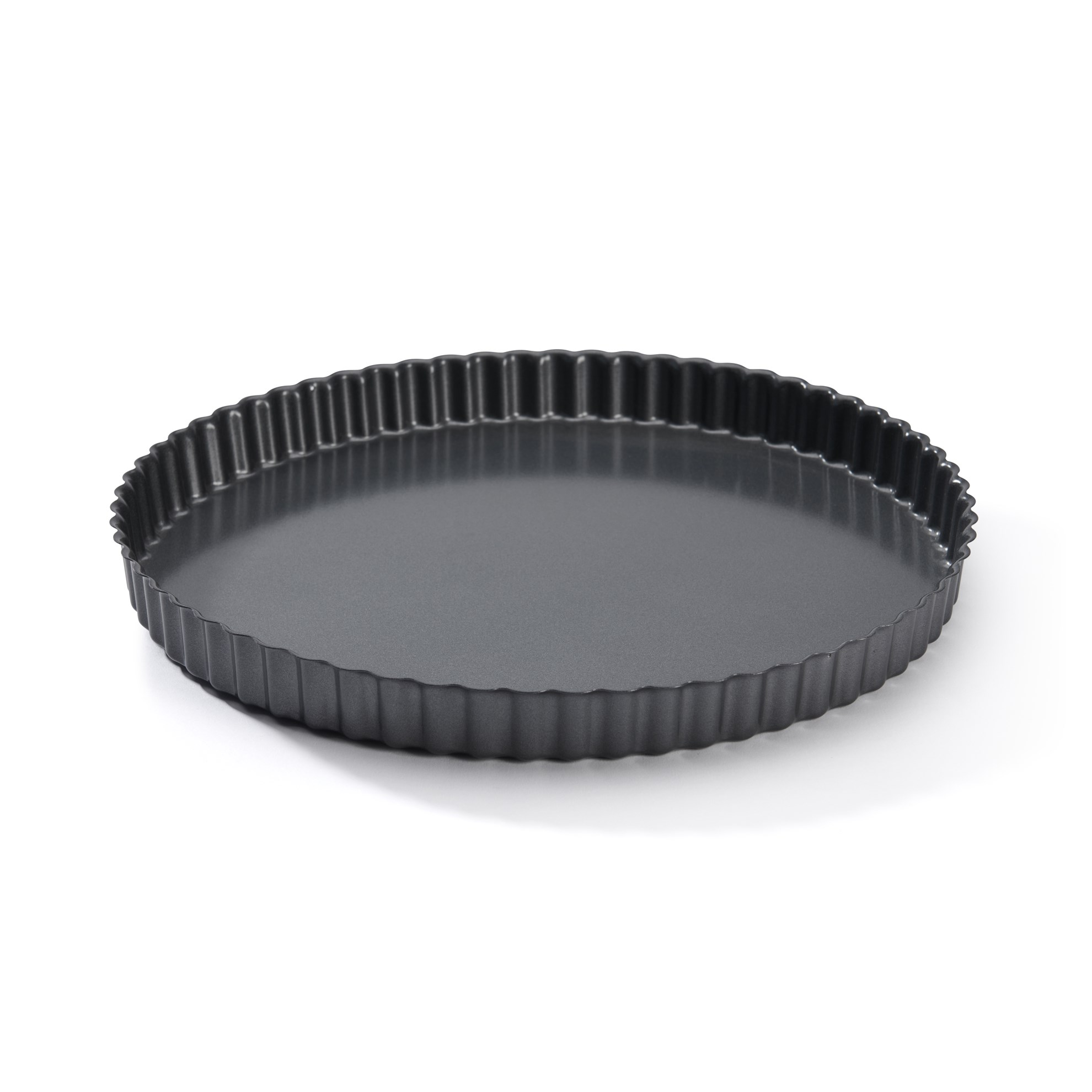 Silná oceľová vrúbkovaná forma na koláč, rovný okraj a pevné dno.