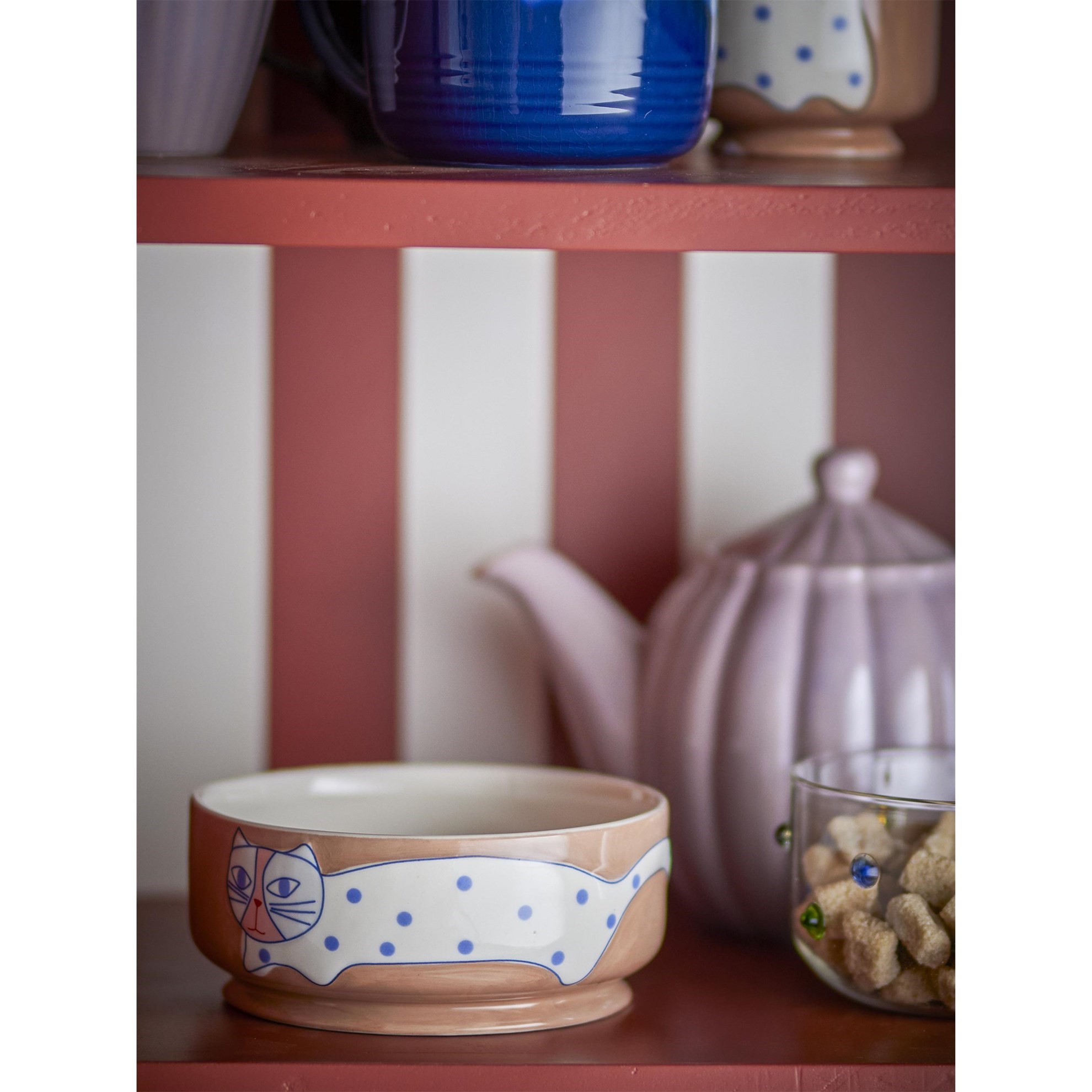 Kameninová miska MISSY s motívom mačky, sv. hnedá