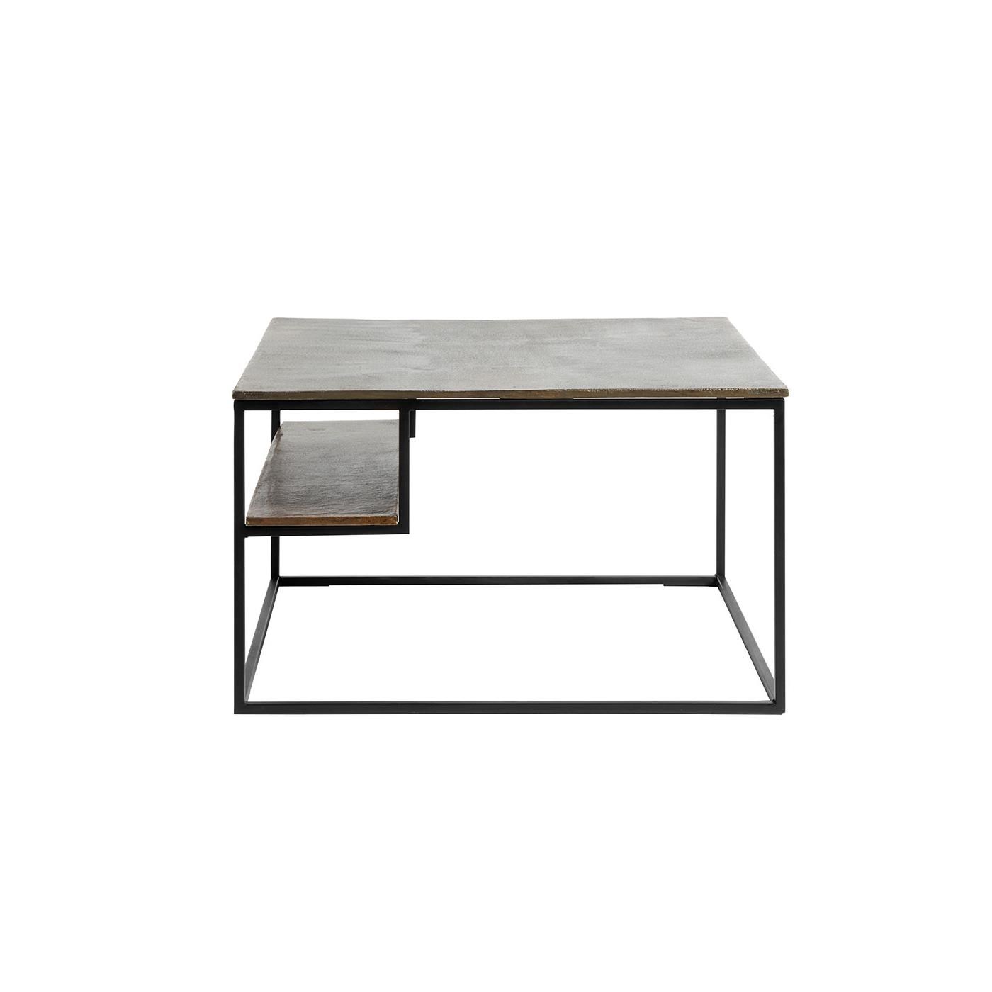 Štvorcový konferenčný stolík Hitch od MUUBS v železe a starožitnej mosadze.