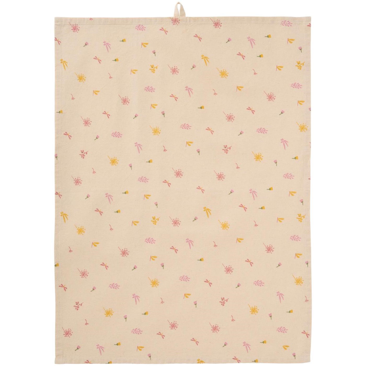 Kuchynská utierka Ofelia Ib Laursen prírodná so svetlo ružovými a žltými kvetmi a motýľmi