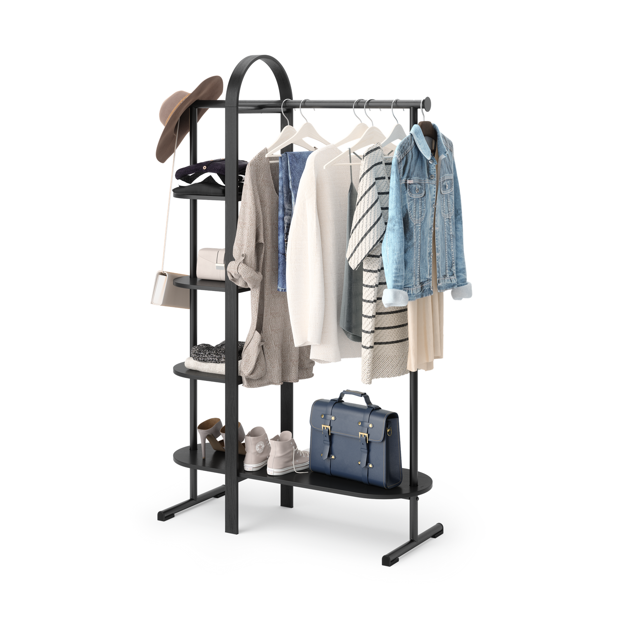 - Dekoratívny a priestorovo úsporný: Regál na odevy Bellwood ponúka optimálny úložný priestor na vystavenie oblečenia, topánok, tašiek a ďalšieho príslušenstva
