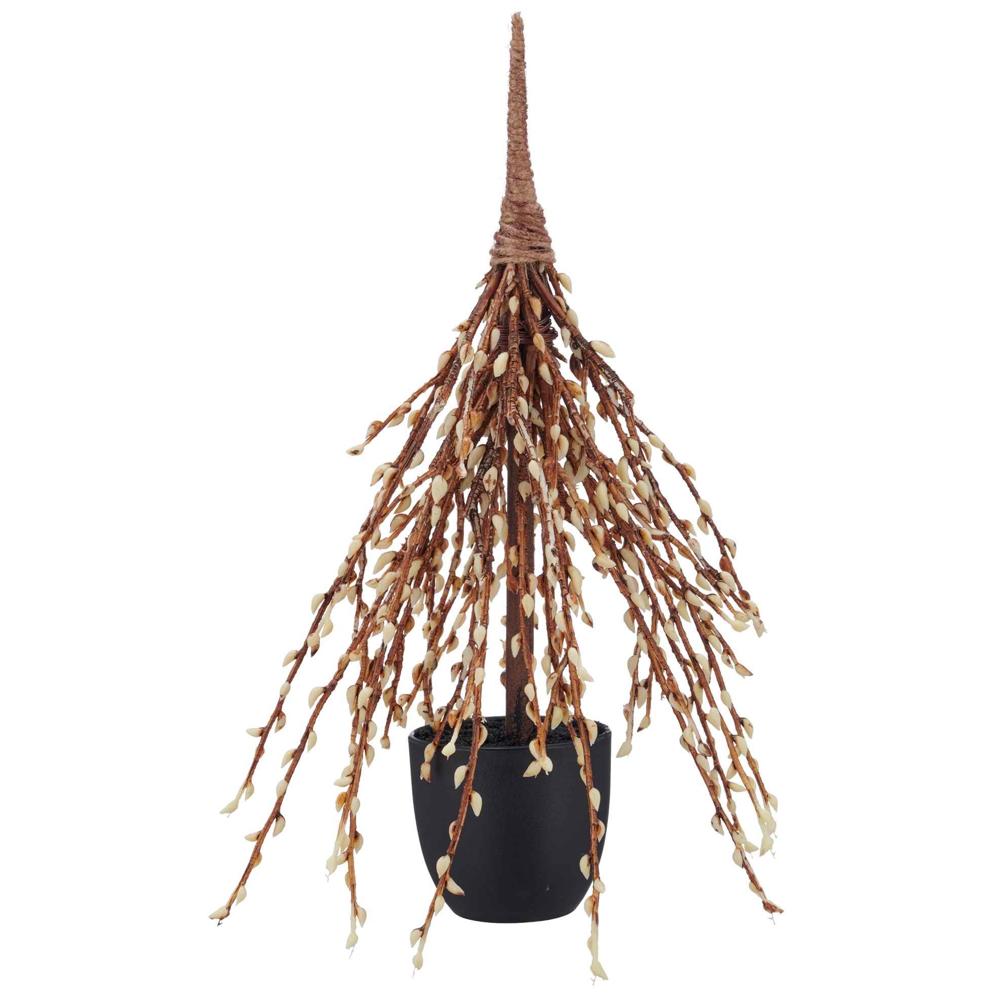 Stromček vŕby s jahnedami 35 cm, prírodný, v čiernom plast. kvetináči 8x8x7 cm