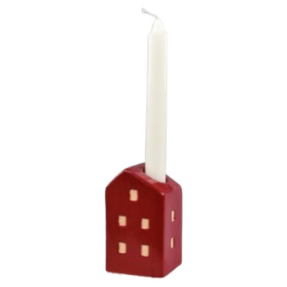 Svietnik v dekore domčeka V.10cm červený