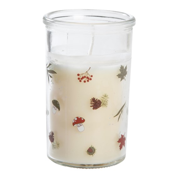 Sviečka v skle s potlačou V.10cm biela