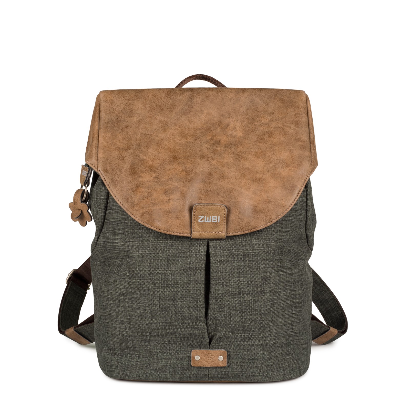 Dámsky stredne veľký batoh ZWEI OLLI O12 je vhodný na nosenie do mesta aj na cesty. Zmestí sa doň notebook (13"), blok A4, fľaša na vodu a ešte tam zostane voľné miesto pre ďalšie potrebné veci. Kvetinový prívesok na boku a malý reliéf na prednej strane dávajú tomuto batohu ľahko hravý dotyk.