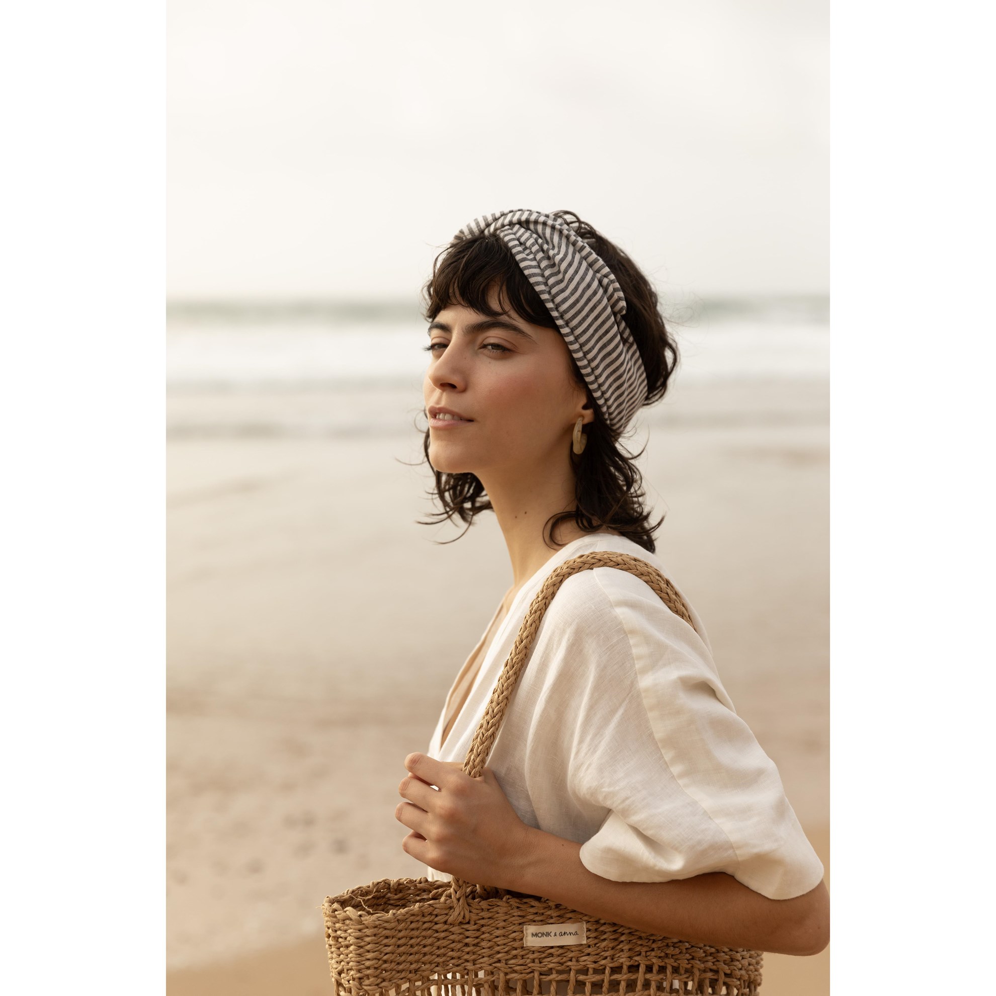 Bavlnená čelenka s tenkým drôtikom Monk & Anna stripes