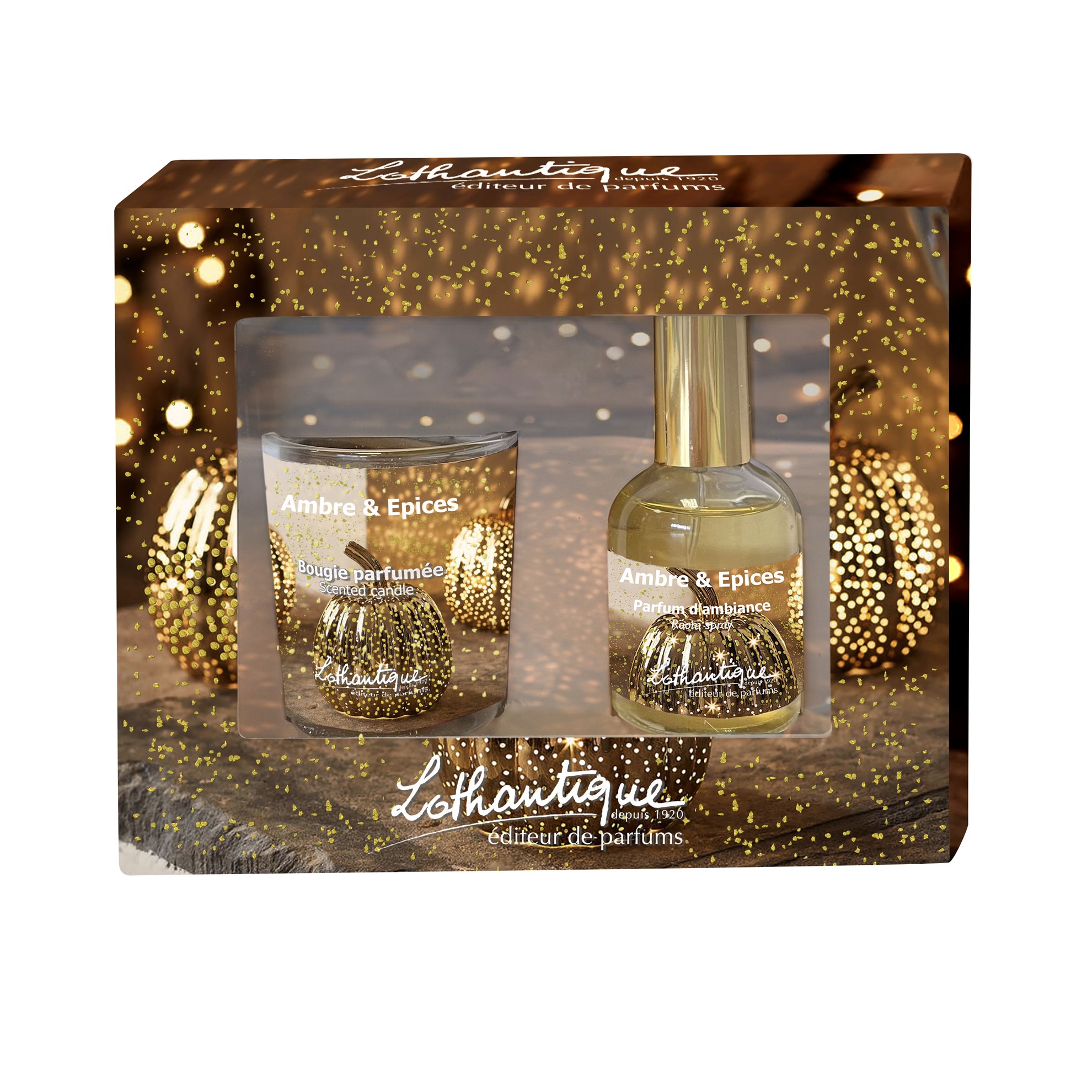Darčekový box sviečka 75g a osviežovač vzduchu 50ml Lothantique AMBRE & ÉPICES