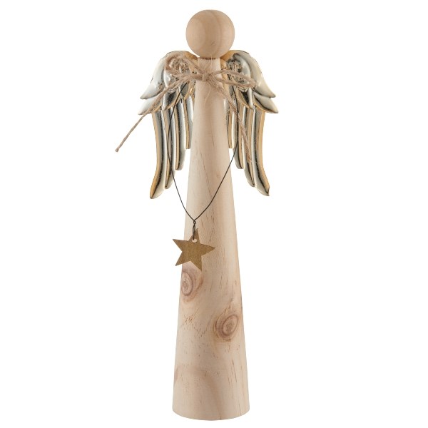 Drevený anjel s kovovými krídlami V.21cm prírodný