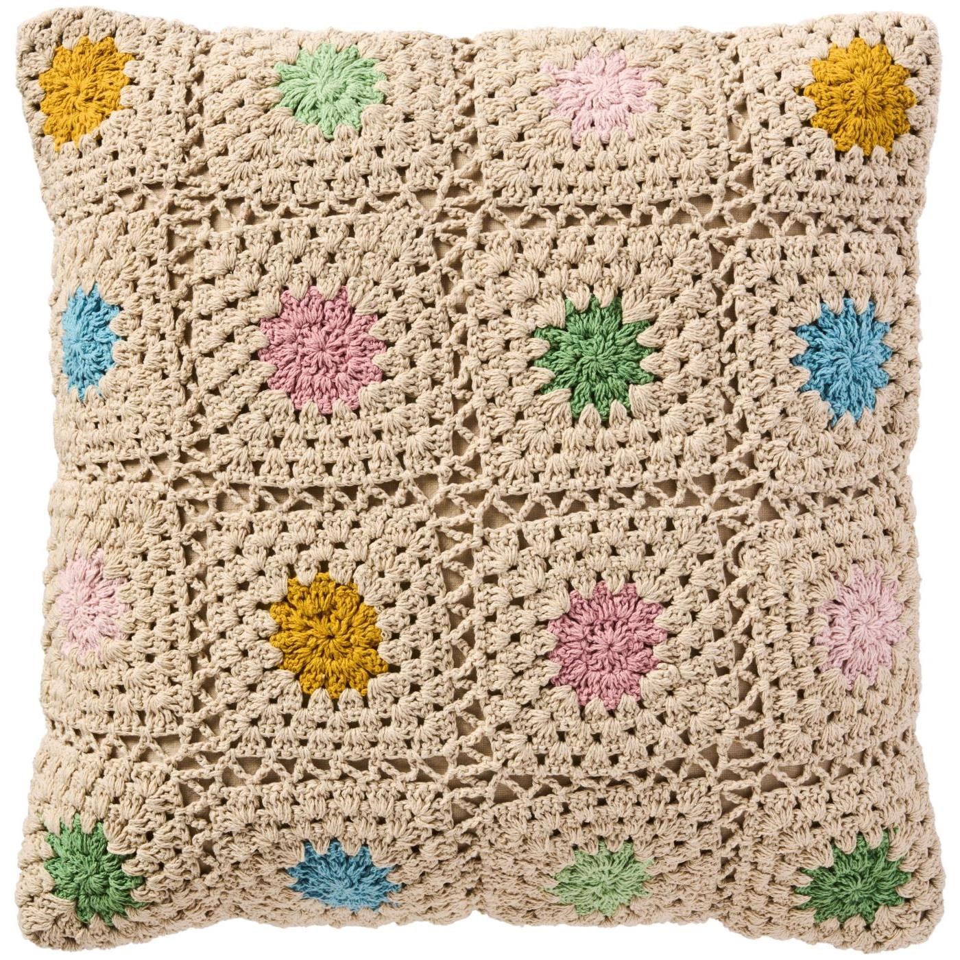 Háčkovaná obliečka na vankúš Ib Laursen prírodná s viacfarebnými kvetmi