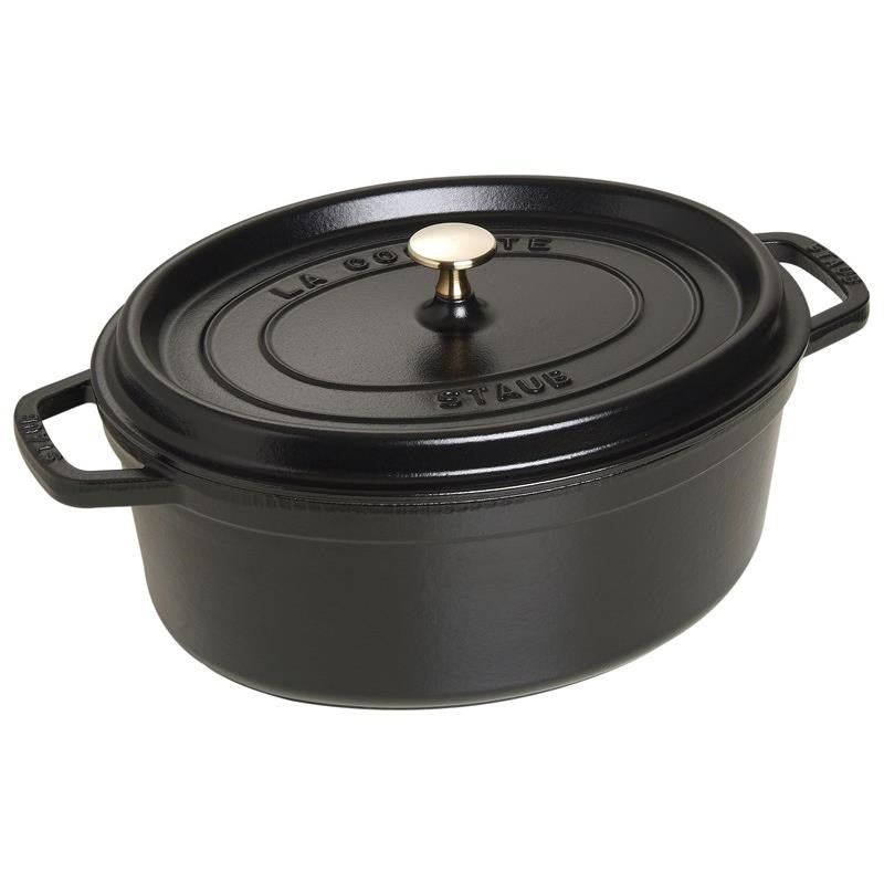 Milovníci francúzskej kuchyne si u Staub prídu na svoje, rovnako ako každý, kto rád pripravuje šťavnaté pečienky a gratinované pokrmy. Jednoduchá manipulácia, robustné smaltovanie a vynikajúca akumulácia tepla presvedčí aj profesionálnych kuchárov. Vďaka konštrukcii pokrievky, ktorá rovnomerne rozvádza kondenzáciu po jedle, zostáva mäso mäkké a zelenina chutí. Hrniec je oválny a so šírkou 31 cm a výškou takmer 17 cm je ako stvorený na prípravu lahodných pečení. Vďaka liatine môžete hrniec umiestniť aj na jedálenský stôl, jedlo v nej vydrží dlho teplé. Hrniec je vhodný na všetky typy sporákov, môžete ho umiestniť aj do rúry na varenie. Neustále a rovnomerné uvoľňovanie tepla zospodu a zo strán umožňuje pokrmu skvele vylúhovať.