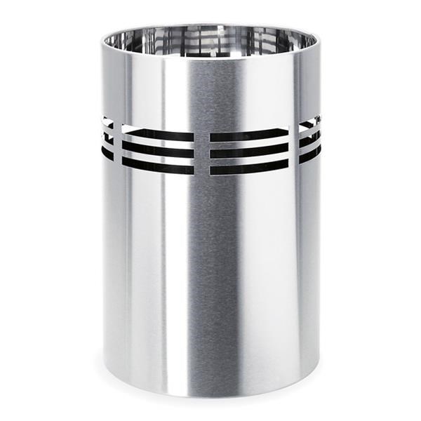 Odpadkový kôš na papier SLICE z matnej nerezovej ocele je vybavený čiernou plastovou vložkou, ktorá zaisťuje jednoduchú a čistú manipuláciu a údržbu. Je vhodný do pracovne či kancelárie.