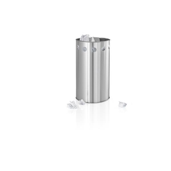Odpadkový kôš SYMBOLO z matnej nerezovej ocele je vybavený čiernou plastovou vložkou, ktorá zaisťuje jednoduchú a čistú manipuláciu a údržbu. Je vhodný do pracovne či kancelárie.