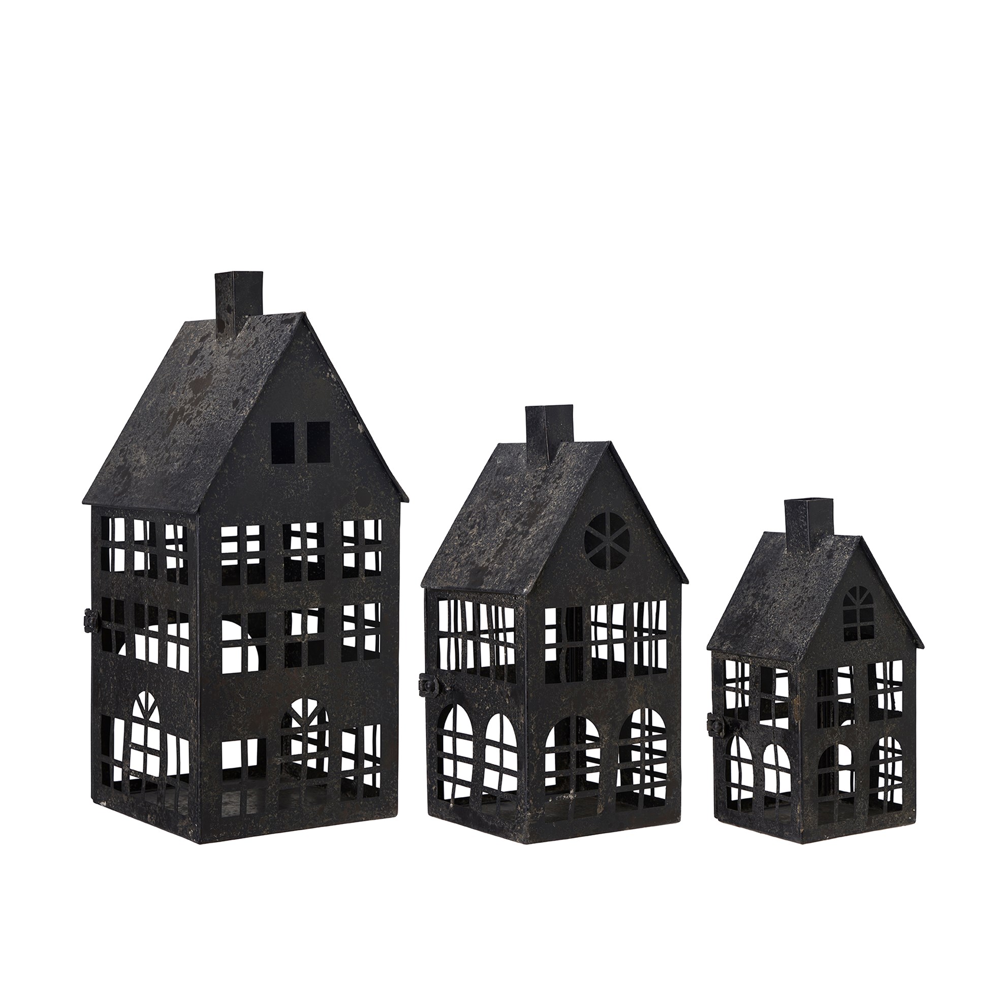 Kovová dekorácia dom HOUSE V.41/31/25cm SET/3ks čierna