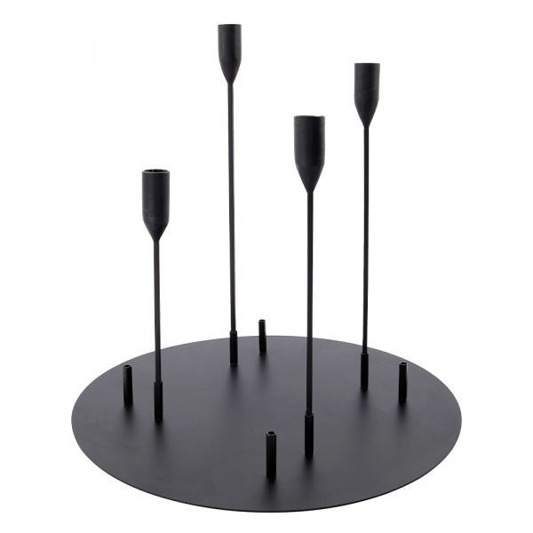 Štýlový, funkčný a netradičný. Kovový svietnik ADVENT od House Doctor si môžete upraviť podľa svojich potrieb. Svietniky s rôznou výškou je možné posúvať a umiestniť tak, aby na okrúhlej základni vytvorili miesto pre vaše obľúbené vázy, ozdoby a ďalšie dekorácie. Vzhľadom k jeho čiernej farbe sa zamerajte na tmavé odtiene a vytvorte design, ktorý dodá vašej vianočnej výzdobe minimalistický a nadčasový nádych. Či už ho umiestnite na jedálenský stôl alebo na príborník, vytvorí vám klasickú eleganciu s moderným nádychom. Svietnik je vhodný pre sviečky s priemerom 22 mm.