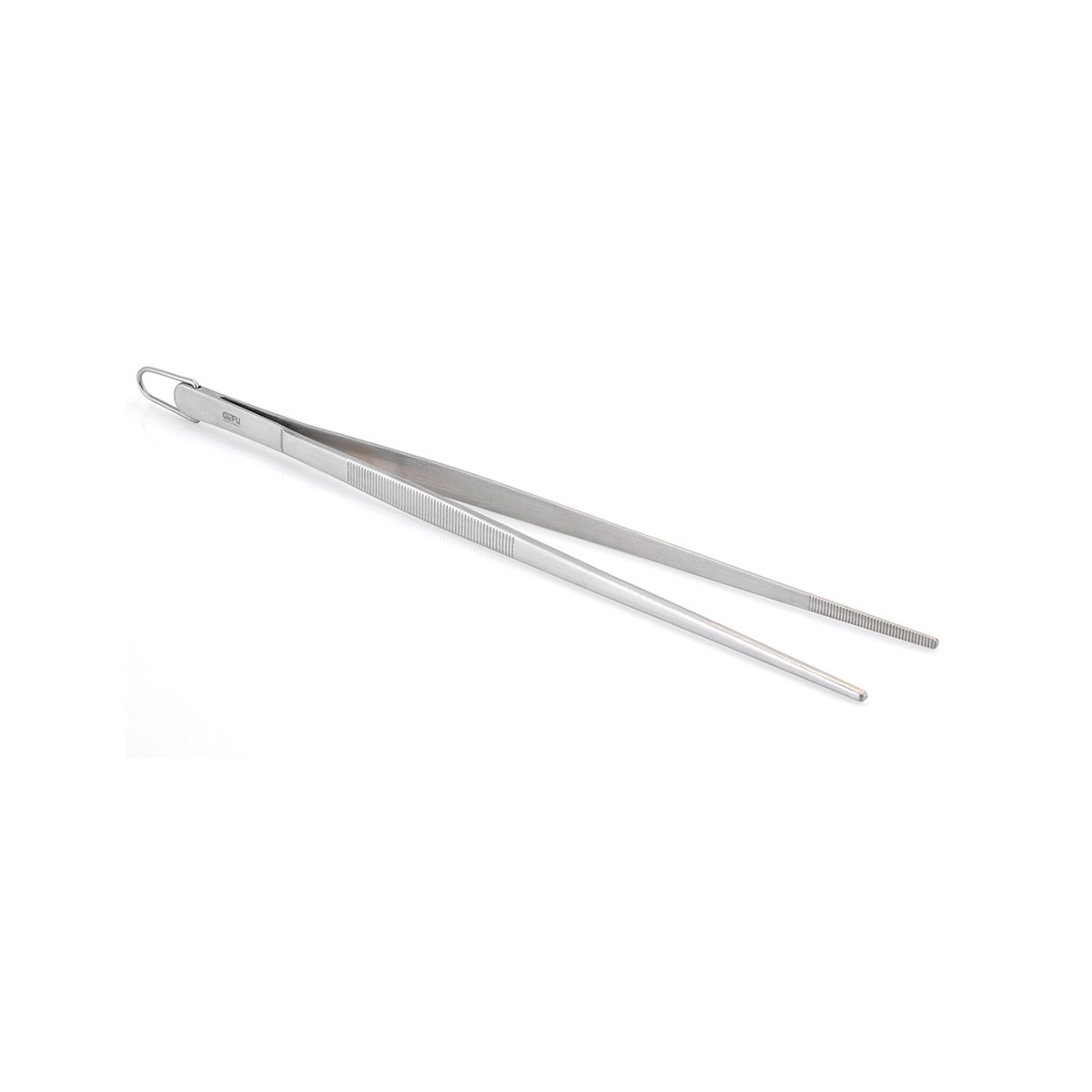 Nerezová kuchynská pinzeta SOCO s dĺžkou 30 cm s vyváženou silou pružiny pre optimálny prenos sily. Pinzeta s využitím na otáčanie a manipuláciu s potravinami poslúžiaci ako v kuchyni pri varení, tak pri stole pri servírovaní pokrmov. Rebrované konce zaručujú bezpečné držanie vyprážaného jedla.