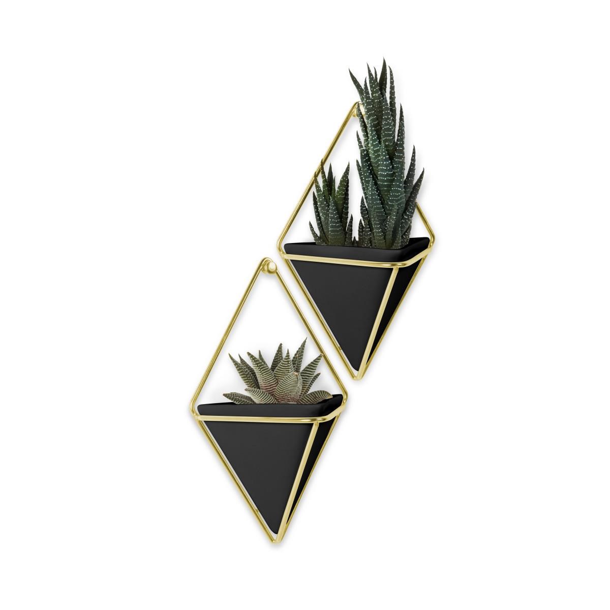 Kvetináč na stenu TRIGG malý SET/2ks čierna, mosadzná