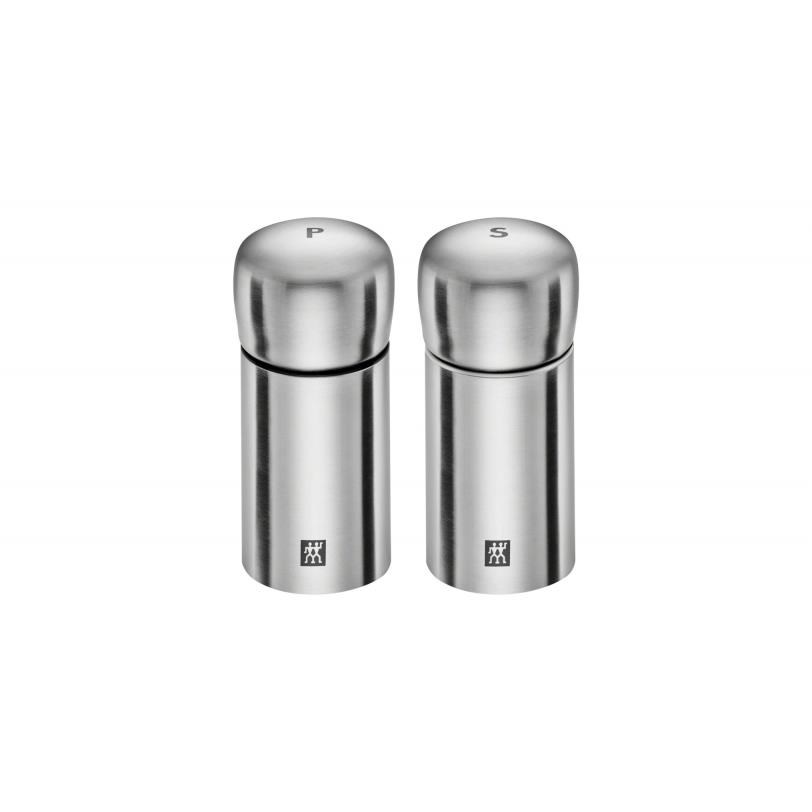 Elegantná sada mlynčekov na soľ a korenie zo série ZWILLING® Spices, z dizajnovej dielne Matteo Thun & Antonio Rodriguez, sa skladá z vysoko kvalitnej nerezovej ocele 18/10 s matným povrchom, preto je, okrem soli a korenia, vhodná aj na ďalšie korenie ako napr. rasca, horčičné semienka a pod. Vďaka keramickým mlynčekom Crush-Grind®, ktoré nepodliehajú korózii , je možné plynule nastavovať jemnosť mletia. Plnenie mlynčekov je obzvlášť jednoduché vďaka ich tvaru. S touto elegantnou sadou mlynčekov na soľ a korenieod ZWILLING môžete svoje pokrmy štýlovo okoreniť pri stole.