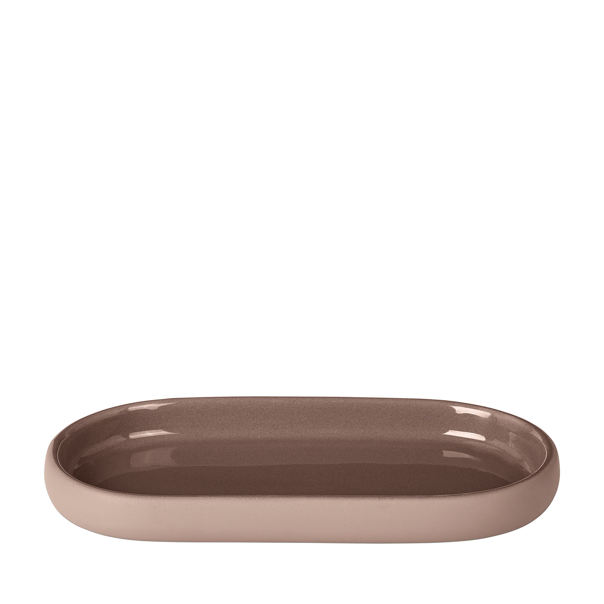 Vytvorte si vlastnú oázu pokoja! Odkladacia tácka Sono vo farbe Misty Rose ponúka priestor pre dávkovače mydla a kelímok na zubné kefky, ale možno ho použiť aj ako poličku na hygienické potreby a podobne. Matný vonkajší povrch mäkký na dotyk vo výraznom odtieni šedej farby betónu zaisťuje príjemný pocit. Podnos je zvnútra glazovaný a ľahko sa čistí. Dostupné aj v ďalších farbách.