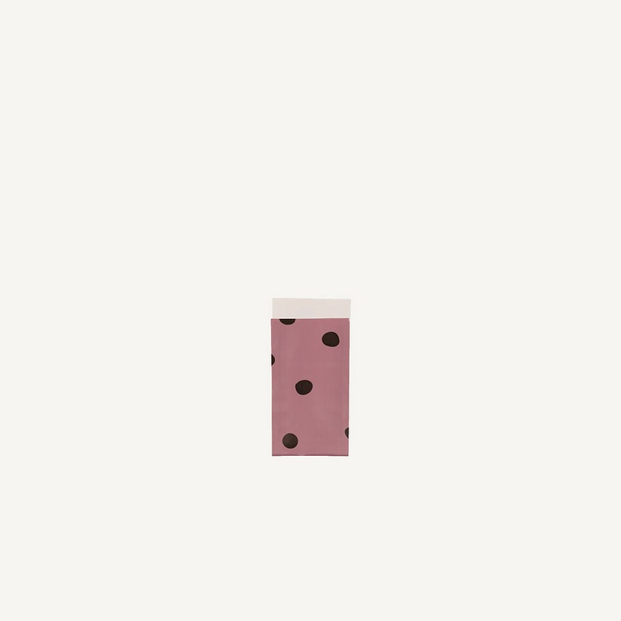 Ploché papierové vrecko fialové s čiernymi bodkami 7x13 cm