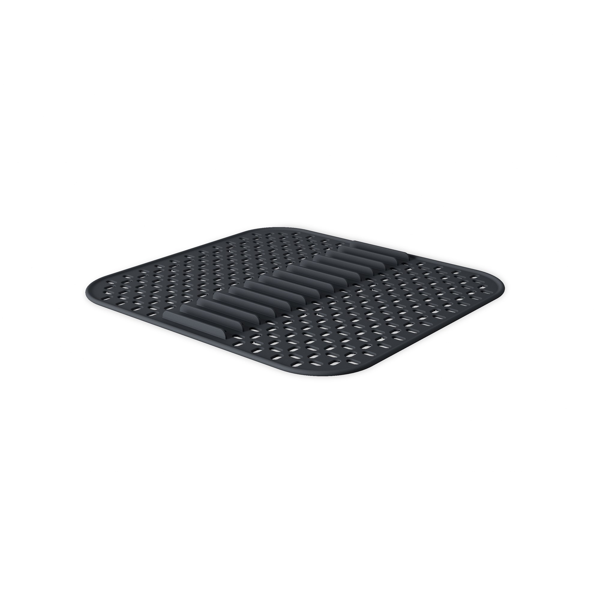 Podložka do drezu / držiak na riad Sling je multifunkčná podložka, ktorá chráni váš drez a riad počas predplachovania, umývania alebo sušenia. Na rozdiel od tradičných plochých podložiek má podložka Sling vyvýšené hrebene, ktoré pomáhajú udržiavať riad vzpriamený a zvislý, čo umožňuje prúdenie vzduchu a ľahké sušenie. Táto univerzálna podložka môže byť použitá pre taniere, tégliky, pokrievky, nože, dosky na krájanie a ďalšie, čo pomáha organizovať váš riad a maximalizovať váš kuchynský priestor. Na spodnej strane podložky sú umiestnené výstupky s voliteľnými čiarami rezu na prispôsobenie odtoku drezu