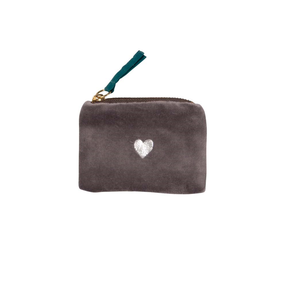 Zamatová taštička na mince 12x8 cm Herz grau