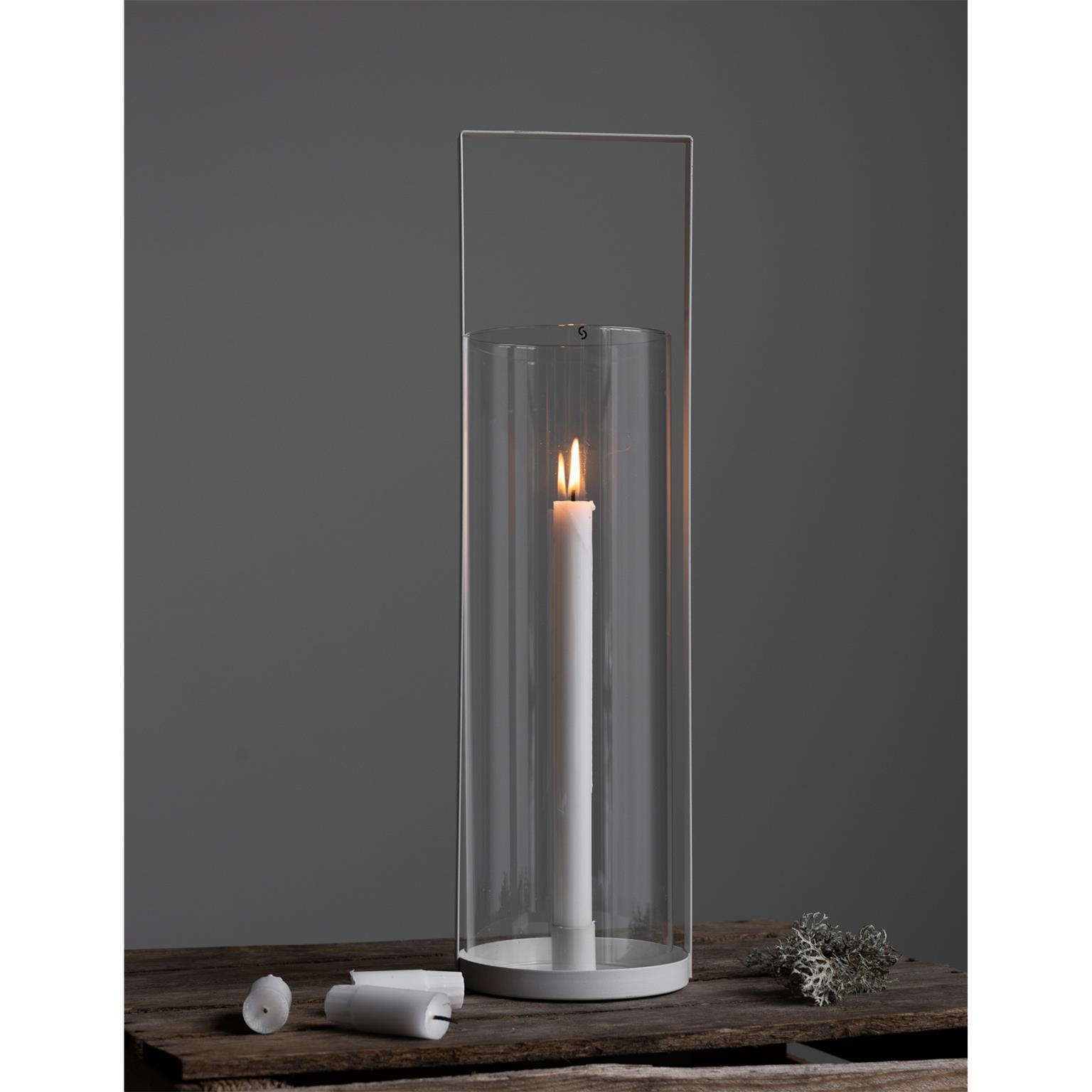 Sklenená lampáš v kovovom stojane KVARNVIK L 15x50cm biela
