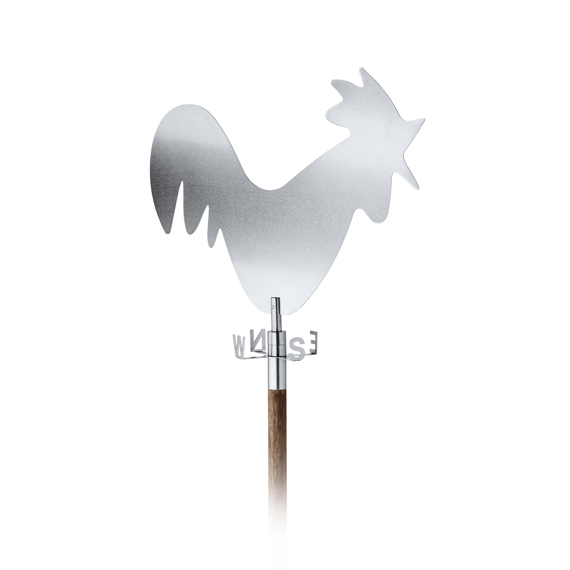 Vďaka veternej koruhvi GALLO z matnej nerezovej ocele a tvrdého dreva vždy viete, odkiaľ vietor fúka. V závislosti na smere vetra sa kohút otáča v guličkovom ložisku na svojej vlastnej osi. Označenie svetových strán, ktoré je umiestnené pod rotujúcim kohútikom, je uvedené v anglických skratkách (N sever, S juh, E východ, W západ). Veterná korouhev GALLO s drevenou tyčou odolnou proti poveternostným podmienkam sa stane elegantným pútačom vašej záhrady či terasy - dokonca aj za pokojného počasia.