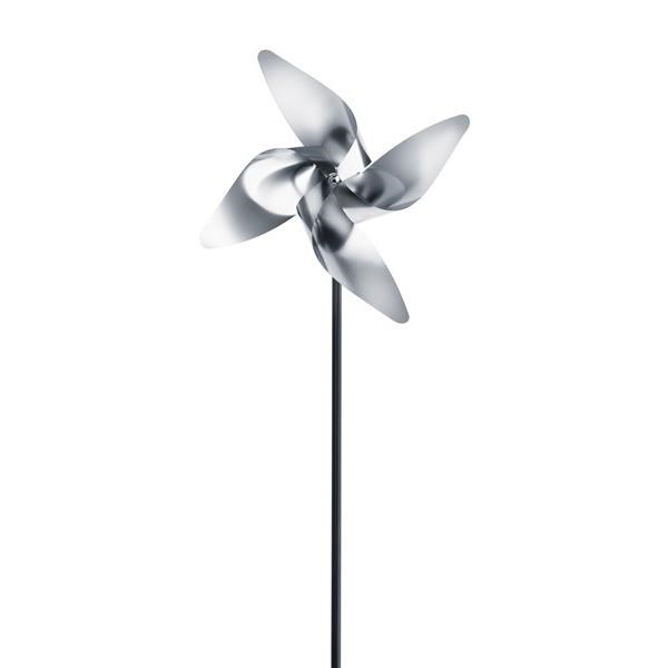 Vetrník VIENTO 4-lopatkový malý vyrobený z matnej nerez ocele je krásnym doplnkom pre záhradu, balkón či terasu. Aj mierny vietor spôsobí, že sa lopatky otáčajú. K dispozícii v troch veľkostiach.