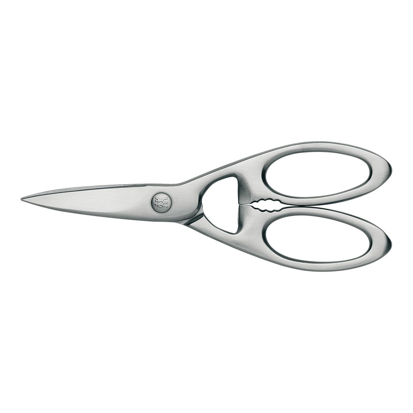 Nožnice z matnej ocele sú vhodné na strihanie tenkých fólií a jemného hodvábu aj na strihanie robustného kartónu a kvetov. Majú tiež otvárač na fľaše, vďaka čomu sú všestranným a elegantným pomocníkom na každodenné použitie. Robustné čepele nožníc boli brúsené ručne a majú mikrovrúbkovanie, ktoré zaisťuje, že strihaný materiál sa nešmýka. 20 cm dlhé viacúčelové nožnice sú vyrobené zo špeciálnej nerezovej ocele. Matná oceľ a skrutka s logom ZWILLING dodávajú nožniciam elegantný dizajn.