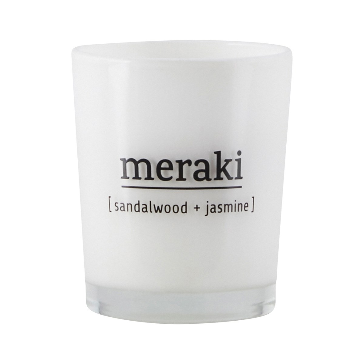 Vonná sviečka SANDALWOOD & JASMINE od Meraki s osviežujúcou vôňou je vyrobená zo sójového oleja a poskytuje čisté svetlo. Sviečka má výšku 6,7 cm a dobu horenia až 12 hodín. Uvoľnite sa a užite si nádhernú vôňu, ktorá sa bude šíriť po celom vašom dome.