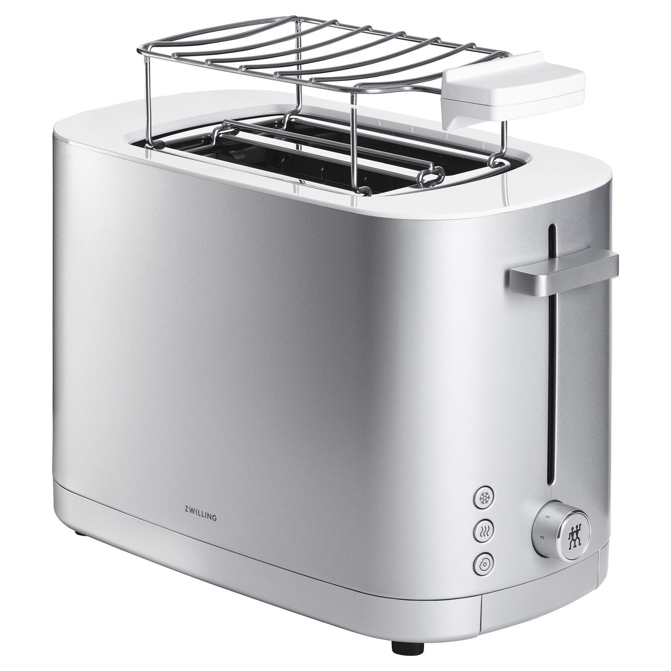 Kvalitný nerezový hriankovač / sendvičovač INFINIGY od ZWILLING na 2 krajce chleba v modernom dizajne zaistí, že toastové plátky budú opečené vždy rovnomerne aj pri niekoľkých opekaniach. Vďaka 4 samostatným vykurovacím telesám sendvičovača s výkonom 1000 wattov sa každý toast opečie rovnomerne z oboch strán. Výsledok je navonok chrumkavý a vo vnútri stále mäkký. Vďaka funkcii soft-lift hotové toastové plátky nevylietavajú, ale jemne vystúpia hore as integrovanou funkciou zdvíhania je možné z sendvičovača ľahko zdvihnúť aj menšie plátky. Toast sa nemôže pripáliť: Hriankovač sa po nastavenom čase opekania automaticky vypne. Aj na najvyššom stupni budú toasty maximálne tmavo hnedé. Každý proces je možné okamžite prerušiť tlačidlom stop. Omrvinky končia v ľahko vyberateľnej tácke na omrvinky. Okrem 7 stupňov opečenia má sendvičovač 3 automatické programy. Pomocou funkcie opätovného ohrevu je možné vychladnuté toasty znovu ohriať. Funkcia rozmrazovania umožňuje priamo opekať zamrznuté toasty. A funkcia bagel s vystredením plátkov chleba umožňuje ideálne výsledky opekania bagelov – pečené zvnútra a chrumkavé zvonku. S odnímateľným nástavcom na žemle možno ohriať alebo opiecť 2 ďalšie žemle. Navyše vďaka symetricky usporiadaným priečnikom je možné nástavec na žemle ideálne použiť aj ako servírovací tanier na vaše toasty.